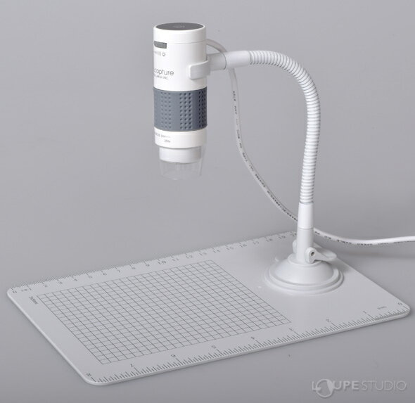 軽量、コンパクトなナノ・キャプチャ本体は、手軽にハンディ顕微鏡としてお使いいただけるほかに、付属の吸盤付スタンドに本体を装着し観察台に固定して使用することもできます。