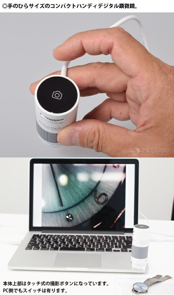 マイクロスコープ usb スマホ 60〜250倍 頭皮 肌 デジタル顕微鏡 ナノキャプチャー プロ PC パソコン android アンドロイド LED おすすめ商品番号:SIG-MS-009パソコンへUSB接続をすることでリアルタイムに拡大された映像を映し出し、静止画・動画の保存も可能。
